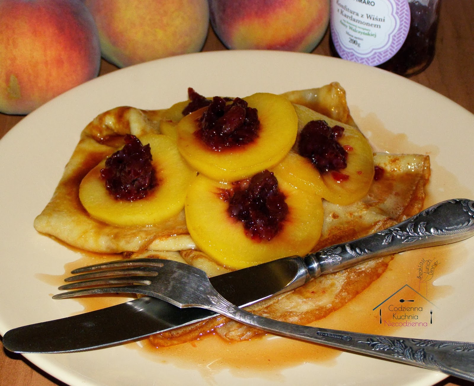 Naleśniki z brzoskwiniami lekko karmelizowanymi, z dodatkiem wiśni ze szczyptą kardamonu. To nie tylko brzmi pysznie – to jest pyszne.