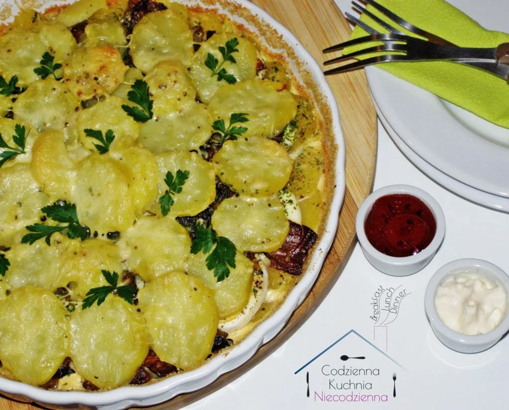 Dziś kolejna propozycja wkopana z czeluści mojego zeszytu z przepisami 🙂 zapiekanka nelsońska – kiedyś dość często gościła na moim stole. I kiedy przygotowałam ją na kolację, to aż się sama zdziwiłam, że mogłam zapomnieć o czymś tak prostym i smacznym. Zapiekanki z ziemniaków dają nam spore pole do popisu. Możemy je modyfikować i ulepszać ile tylko starczy nam wyobraźni. I przede wszystkim zawsze smakuje i każdemu 🙂 nie spotkałam zrzędy, której taka zapiekanka nie smakowałaby 😉