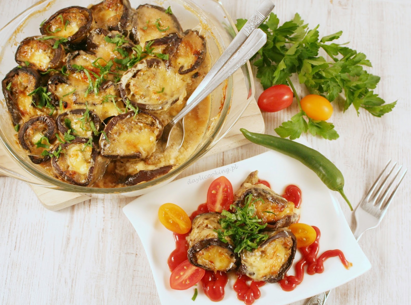 Zapiekane roladki z grillowanego bakłażana, z mielonym mięsem i serem. Doskonale smakują zarówno na zimno jak i na ciepło.