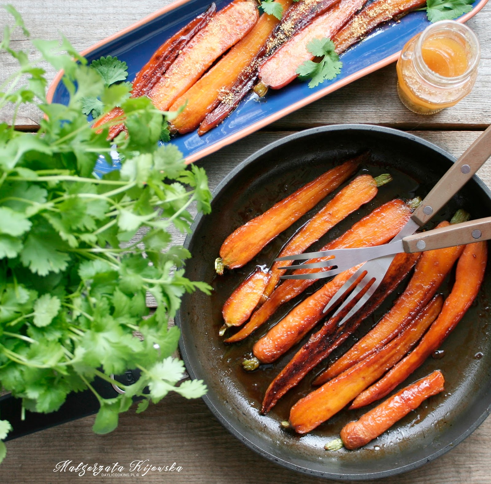 Nieodmiennie co roku o tej porze taszczę do domu siatki pełne sezonowych cudowności. Młode warzywa, zielenina, owoce… Uwielbiam po prostu. Młoda marchew należy do tych warzyw, które mają nieograniczone zastosowanie. Od prostych surowych kawałków do pochrupania zamiast słodkich przekąsek, do pachnących latem surówek. Karmelizowane marchewki odkryłam niedawno, ale polubiłyśmy się od pierwszego kęsa. Przygotowanie ich jest dziecinnie proste, a przy okazji dzieci można włączyć do ich przygotowania. Dzieciaczki szorują marchewkę pod kranem, bo przecież nie trzeba ich obierać. My ją obsmażamy. Potem pozostaje już tylko wspólne pałaszowanie.