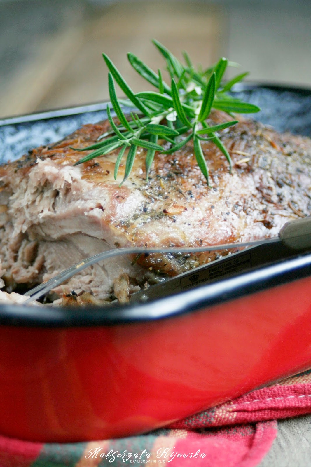 Dzisiaj mam dla Was przepis na pyszną pieczoną karkówkę. Z zewnątrz jest lekko chrupiąca, a w środku miękka i bardzo soczysta. Rzadko jemy mięso, ale takiej pieczeni nikt w domu nie oprze się. Jeśli nie zjecie całej na obiad, to do kanapek jest rewelacyjna. Można ją wtedy podawać z kanapkami na zimno lub na gorąco. W swoim domu taką pieczeń przygotowuję na święta.